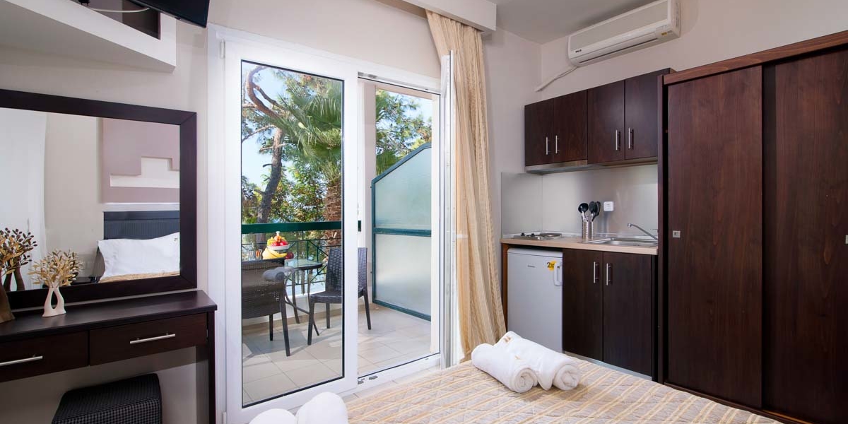 Το δίκλινο στούντιο έχει κομψή διακόσμηση και είναι ιδανικό για ζευγάρια καθώς μπορεί να φιλοξενήσει έως και δύο άτομα στο διπλό κρεβάτι που διαθέτει.