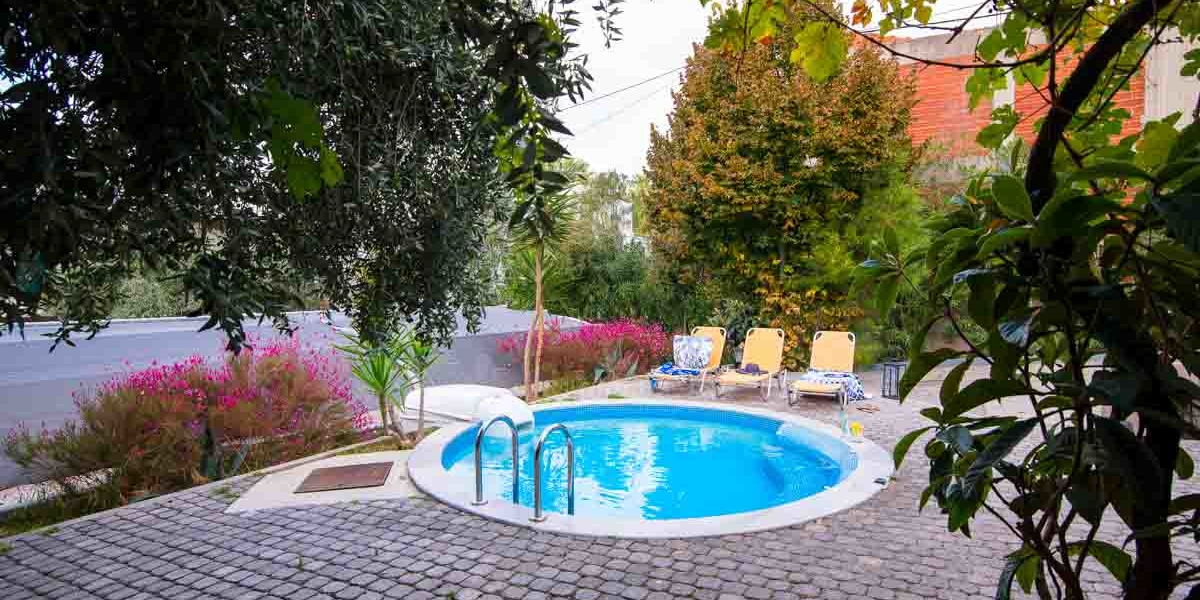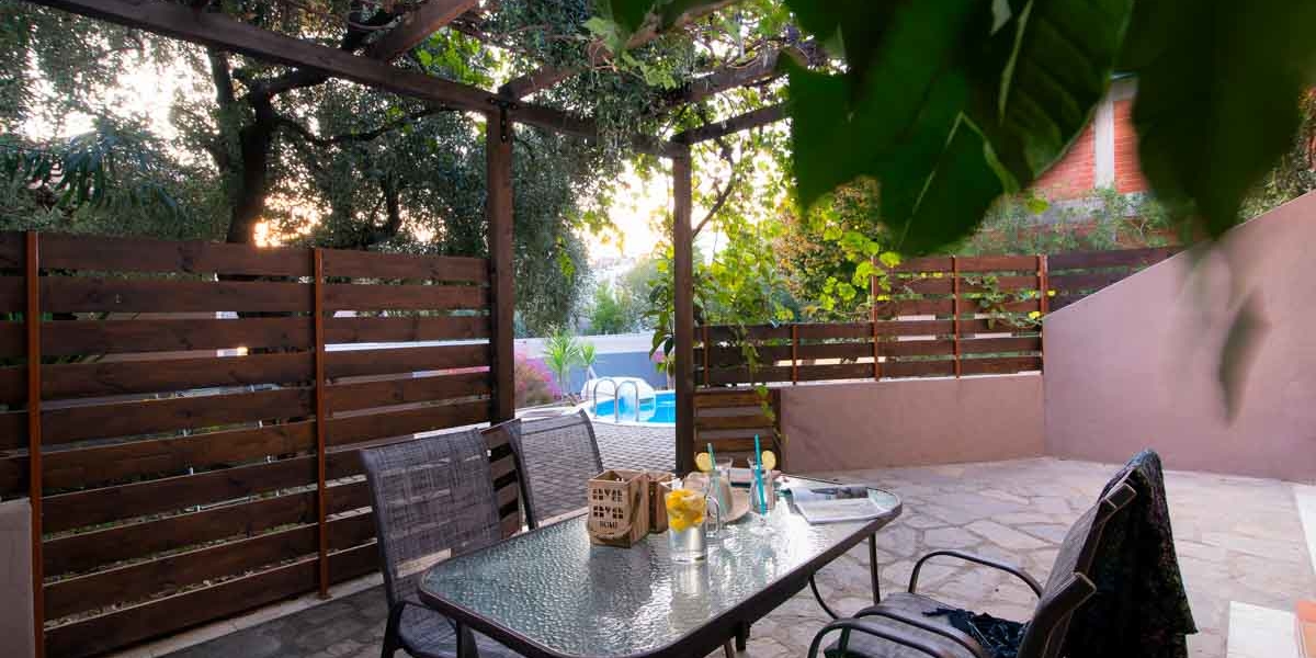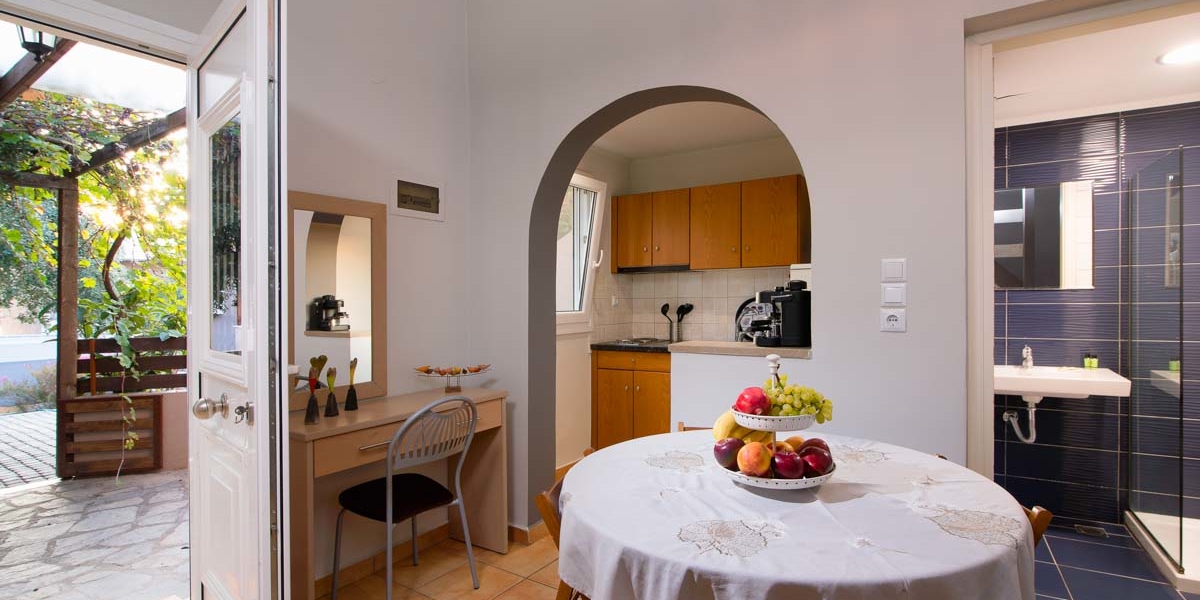 The kitchen is equipped with a kitchenette, refrigerator & various cooking utensils. The bathroom is spacious, modern & is equipped with a shower cabin. Finally the maisonette has direct access to a magnificently furnished private courtyard with access to a private swimming pool where you can relax and enjoy yourself.